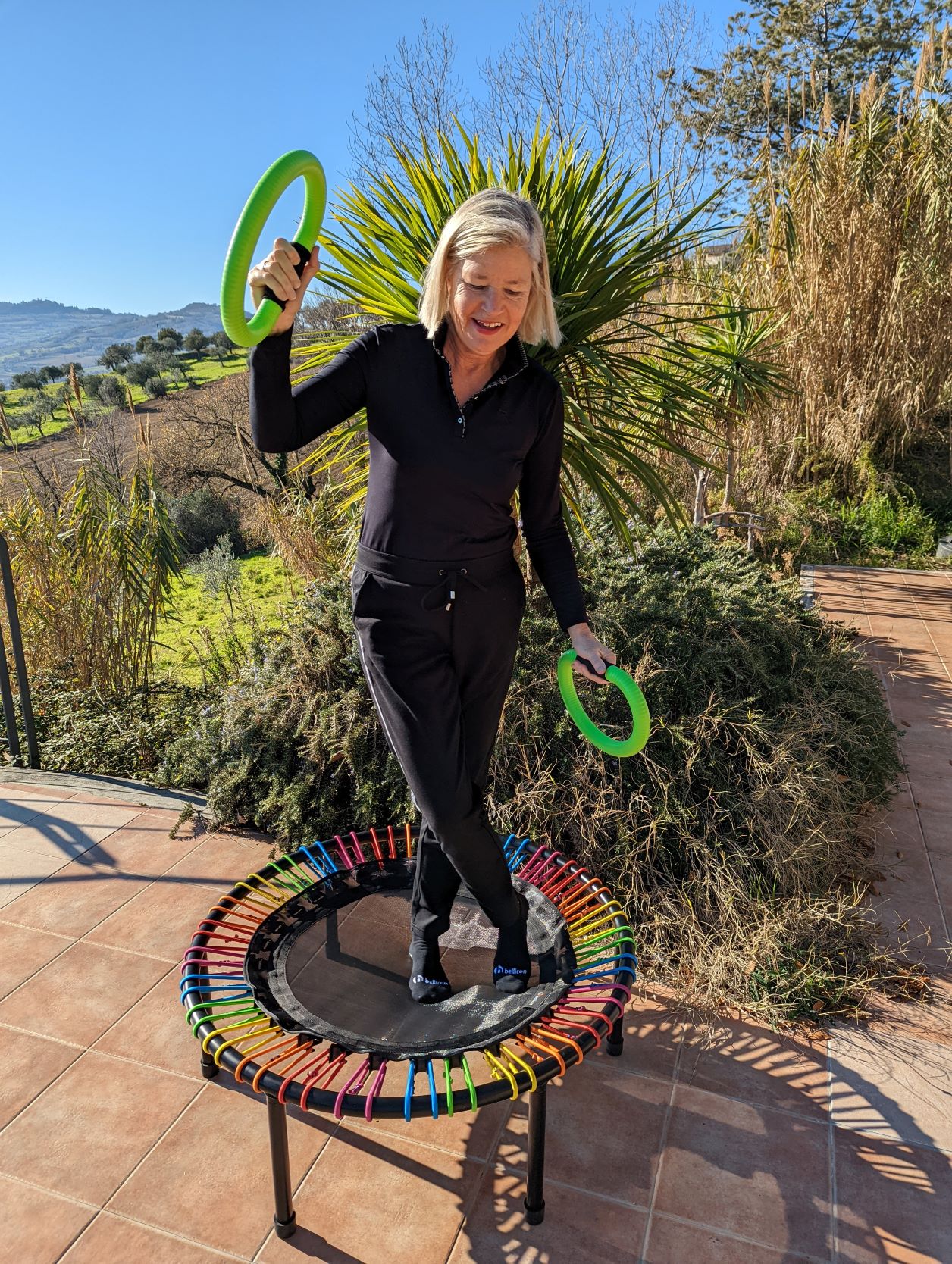 Ein zusätzlicher guter Tipp kam von Trainerin Tanja im Vitness-Partnerstudio in Poing bei München: Gegen Osteoporose hilft vor allem auch Schnellkraft-Training. Der Grund: Der schnelle Reiz überträgt sich rascher auf den Knochen und regt ihn zum Wachstum an. Mein Programm wurde also neu eingestellt, so dass zwischendurch auch immer wieder Schnellkraft-Übungen eingebaut werden.