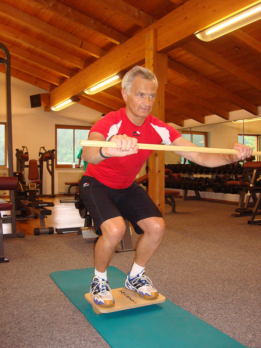 Problemlos von Anfang an geht das Sitzen. Das Keilkissen steht längst gut verpackt im Keller. Aber ich merke, dass ich nach einiger Zeit am PC besser aufstehen sollte, um mich zwischendurch zu „entfalten“, sprich zu dehnen. Wir im Sitzen Tätigen haben ja allgemein sowieso das Problem verkürzter Oberschenkel-Muskeln. Also heißt es: Positionswechsel. Mal zwischendurch einen Tee kochen (Flüssigkeitshaushalt!), einen Lebkuchen schnappen (Energieschub), aufs Clo gehen, ein Telefonat im Stehen führen etc. Dann stützt man sich auf die Stuhl- oder Tischkante und stellt das operierte Bein nach hinten bis die Wade spannt – Spannung halten, wieder locker lassen. Das beidhändige Abstützen geht natürlich auch prima an jeder Wand. Dieses Stretching wirkt Wunder.