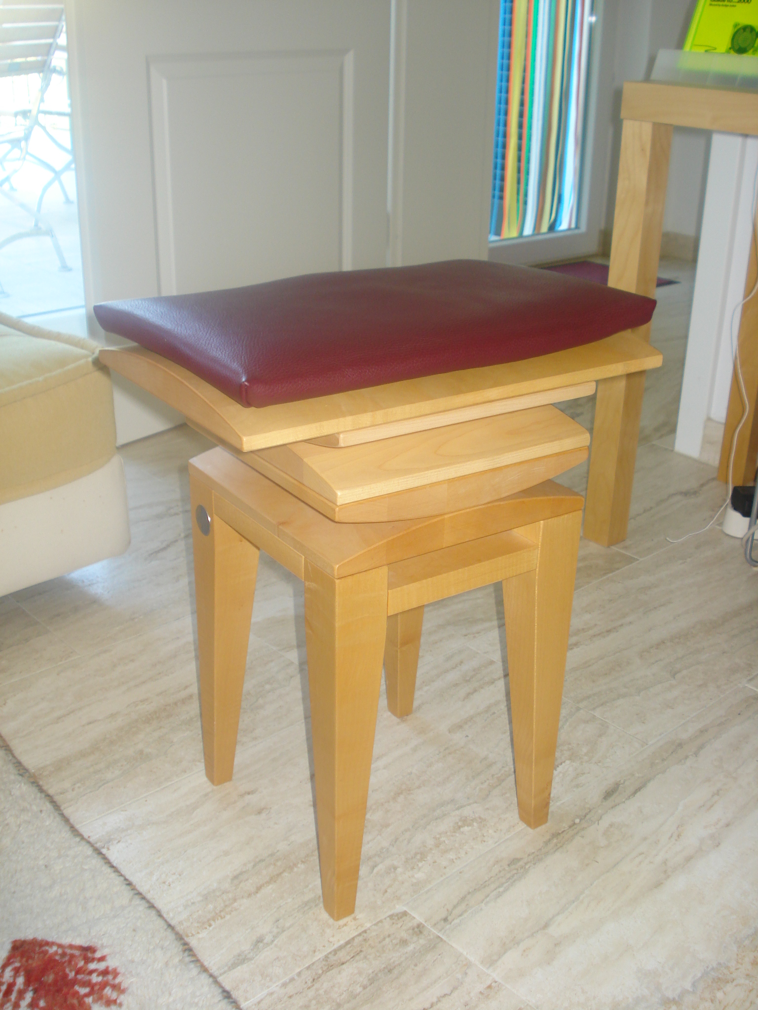 Zurück zum Buchstaben M: Hier habe ich beim ersten M-Artikel in diesem Blog den Mi Shu-Bewegungsstuhl vergessen. Es handelt sich um einen hölzernen Design-Stuhl, der in jedes Wohnzimmer passt und ideal ist, um „zentriertes Sitzen“ zu üben. Der Begriff kommt aus dem Japanischen: Mi = Körper, Seele, Selbst; Shu = Zusammenwirken, Zentrierung, Konzentration. Dieser Hocker besteht aus mittels „Gelenken“ miteinander verbundenen, dreidimensional beweglichen Holzteilen und einem Sitzkissen. Das „Wackeln“ mobilisiert die Muskulatur, kräftigt sie und entspannt den Rücken. Nicht schlecht für Hüft-Patienten. Die Werkstatt in Grafing bei München stellt auch Balancierscheiben her. www.mishu.de.