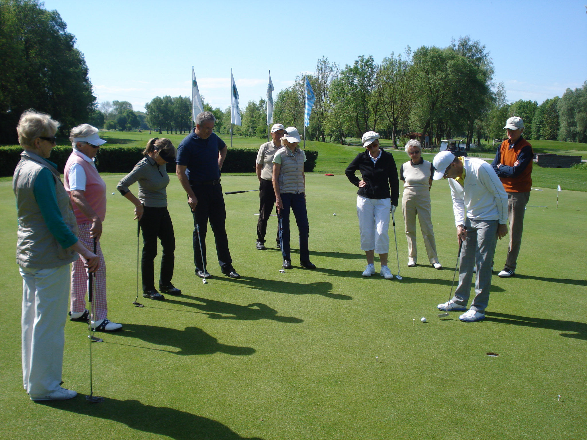 Pro Mark Temblett, der seit Jahren mit künstlicher Hüfte Golf spielt, beim Training auf dem Eichenrieder Putting Grün