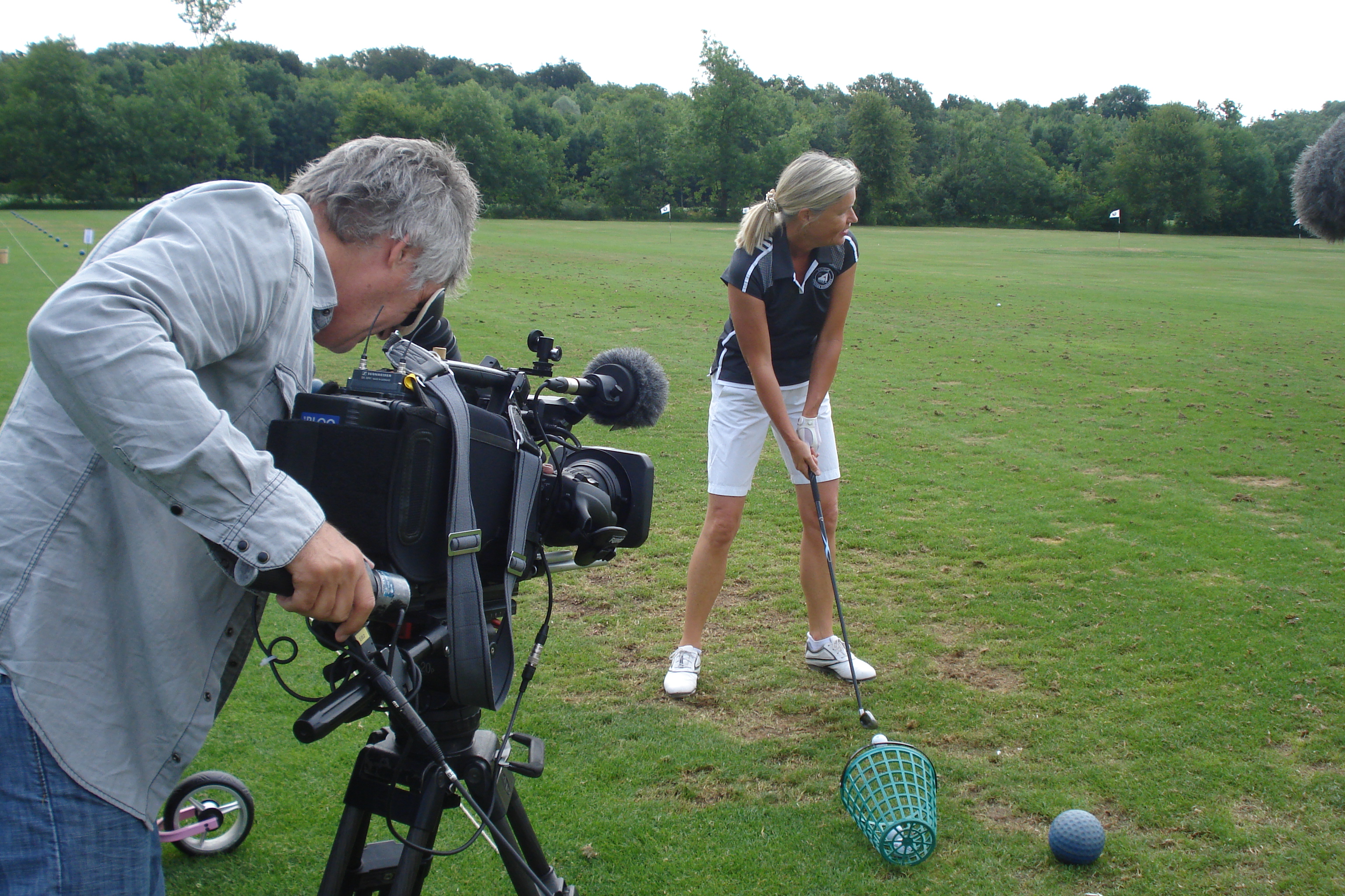 Dreharbeiten im GC München Eichenried mit Doppel-Hüft-TEP-Trägerin Heidi Rauch für die BR-Abendschau am 3. Juli.