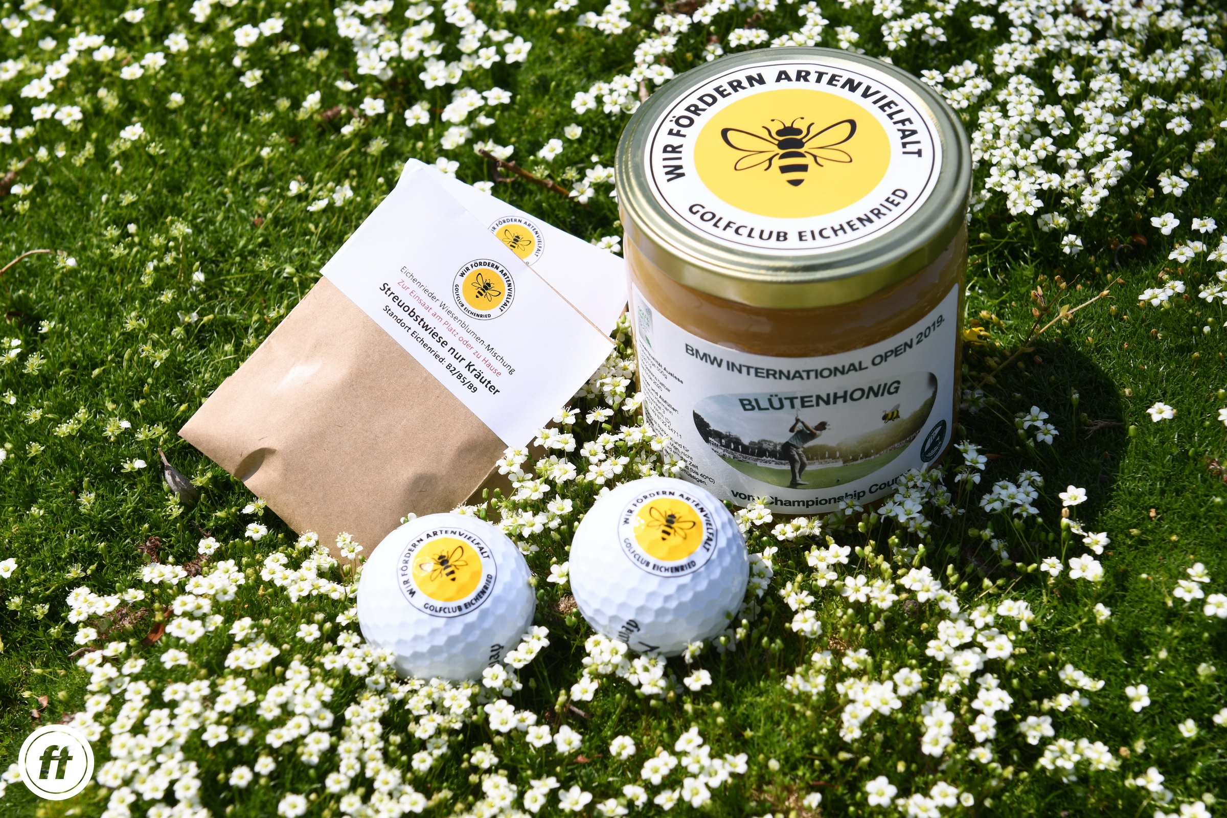 In meinem Golfclub München Eichenried, in dem ich seit 1988 Mitglied bin, ist unser Geschäftsführer Wolfgang Michel ein erklärter Naturfreund und Naturschützer. Das eigens entwickelte Bienen-Logo „Wir fördern Artenvielfalt“ setzt er ein, wo es geht, um uns alle zu sensibilisieren. Am Empfang im Clubhaus werden Samen-Säckchen zur Aussaat verkauft, von der Allianz ist eine Streuobstwiese angelegt worden – und unser Vize-Headgreenkeeper Willi ist Hobby-Imker mit 100 Bienenvölkern auf unserem Platz! Der Eichenrieder Honig ist exzellent und sooo gesund.